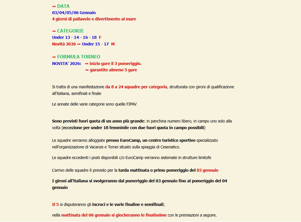 Torna il Befana Volley dell'Eurocamp dal 3 al 6 gennaio